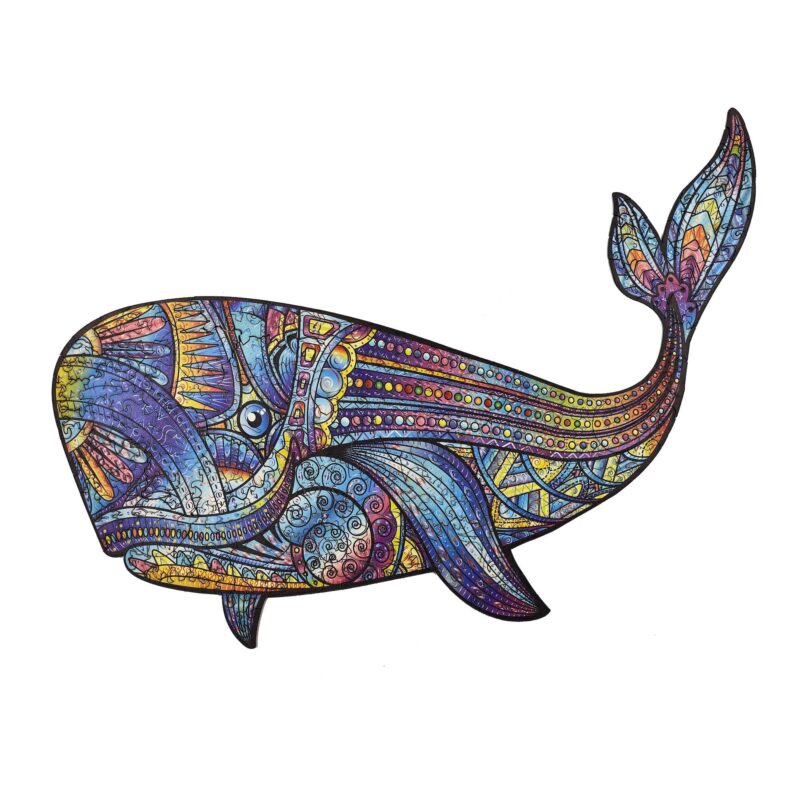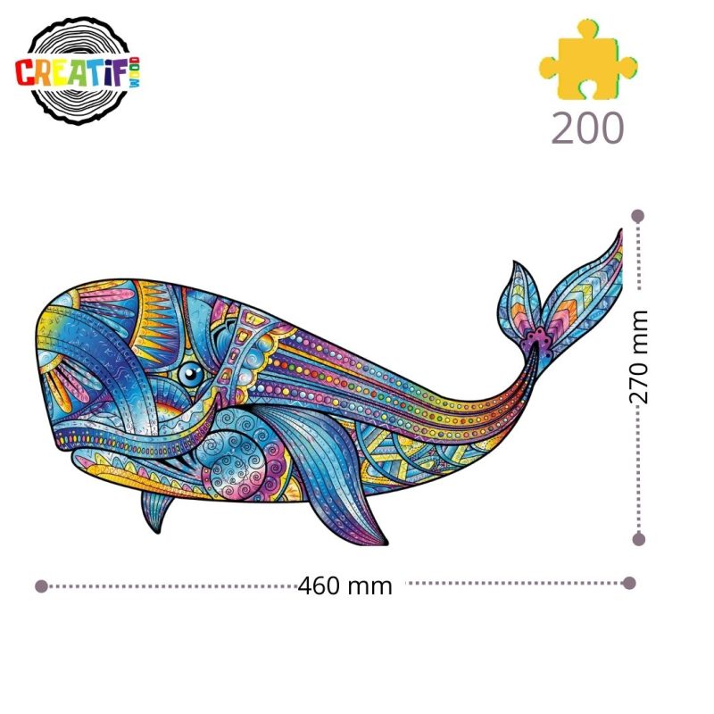 Blauwe vinvis 42 x 25 cm - Houten puzzel (200 unieke stukjes)