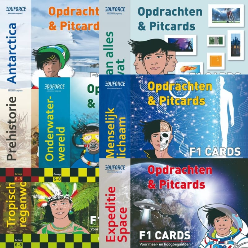 F1 Cards is een compleet verrijkt HB-programma voor meer- en hoogbegaafde leerlingen (groep 6 t/m 8) in het primair onderwijs. F1 Cards zijn gemaakt voor leerlingen (leerlijn 4 en 5) in een plusklas, maar gebruik als verrijkingsmateriaal in de reguliere klas behoort zeker tot de mogelijkheden.