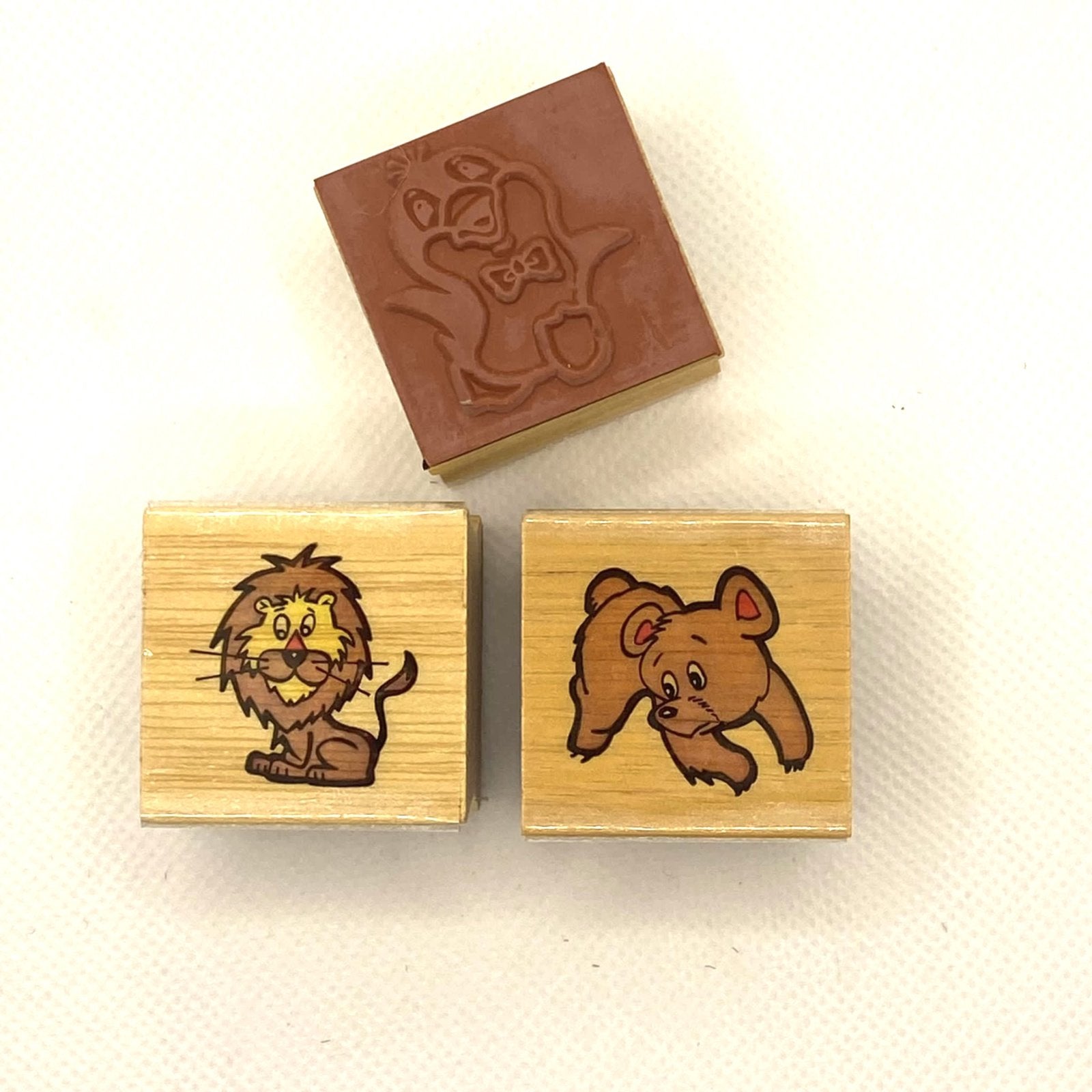 Houten stempels vierkant dieren (3 stuks) leeuw/beer/pinguin