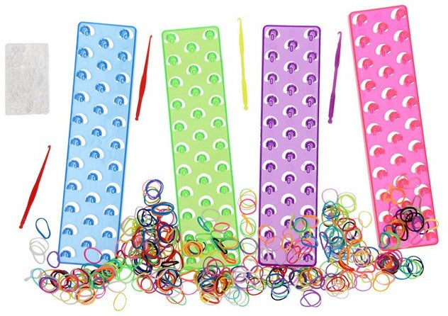Armbandjes van rubber bandjes, de trend uit de USA en nu heerst deze onwijs leuke trend zich ook in Nederland dus probeer het ook eens uit. De knooptechniek komt uit de VS en is gewoon te bewonderen om alle polsen. Loom bevordert de creativiteit, logisch denken, en fijne motoriek van kinderen. Hoe werkt het nu eigenlijk? Op een weef raam (de Loom), met een haaknaald of zelfs met twee potloden kunt u armbanden, hangers en oorbellen maken. Er zijn bijna oneindig veel combinaties mogelijk, je zult er geen genoeg van kunnen krijgen! Maak sieraden en sleutelhangers voor al je vrienden/vriendinnen wie je ook maar wilt.